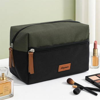Make-up Reisetasche mit zwei Reiß verschluss taschen Großer kosmetischer Organizer Personal isierter Kultur beutel für Männer Frauen