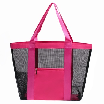 Eko yüzme kiti plaj çantaları kadın erkek için ekstra büyük fermuarlı ön cep aile Tote Mesh omuzdan askili çanta