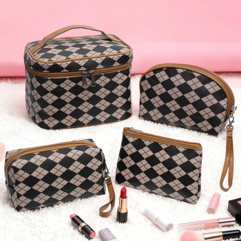 Túi đựng đồ vệ sinh cá nhân du lịch chống thấm nước, kiểu dáng hình học, chất liệu da, hộp đựng mỹ phẩm chuyên nghiệp, túi đựng đồ trang điểm